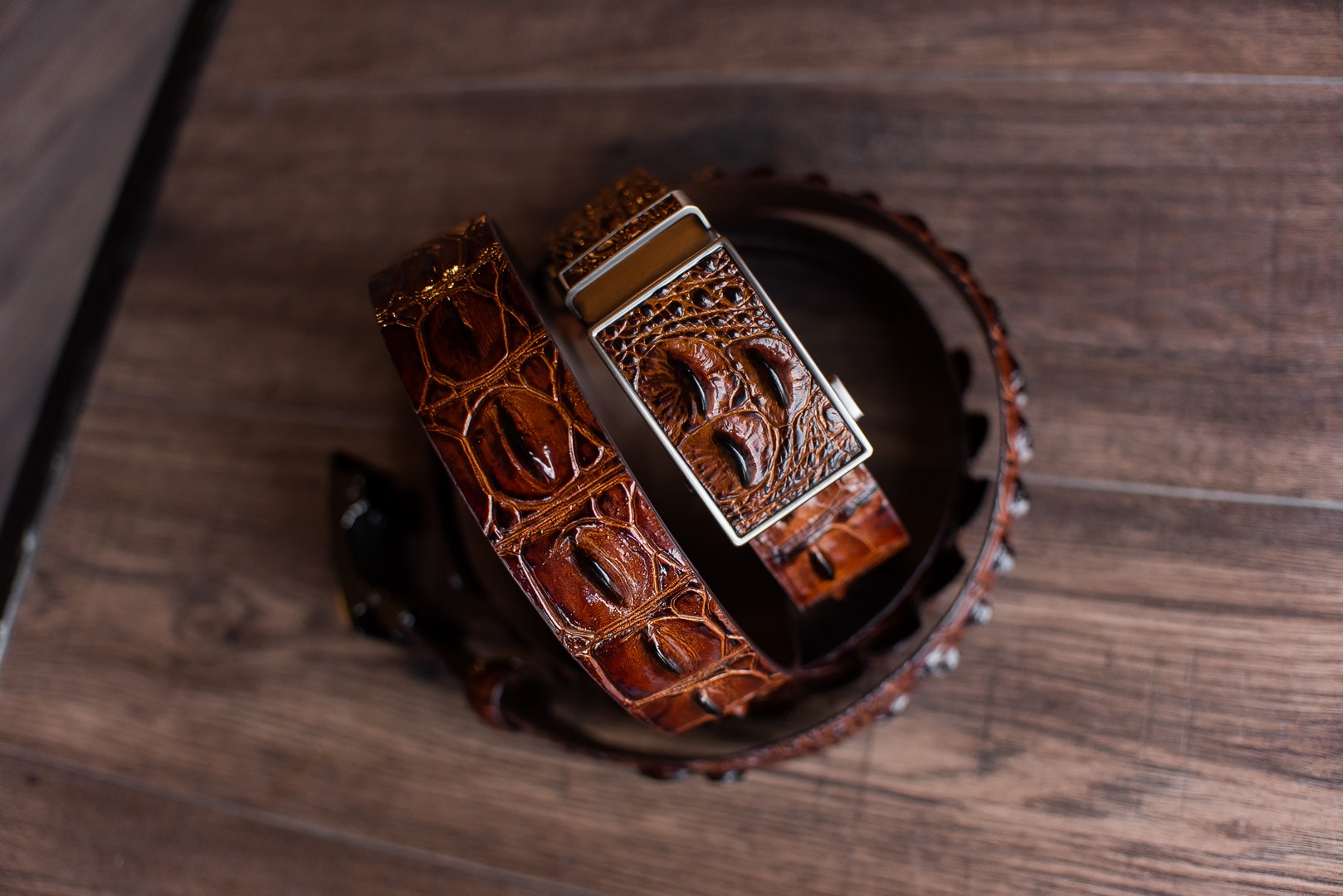 Для изготовления ремня выбрали прочную кожу крокодила.