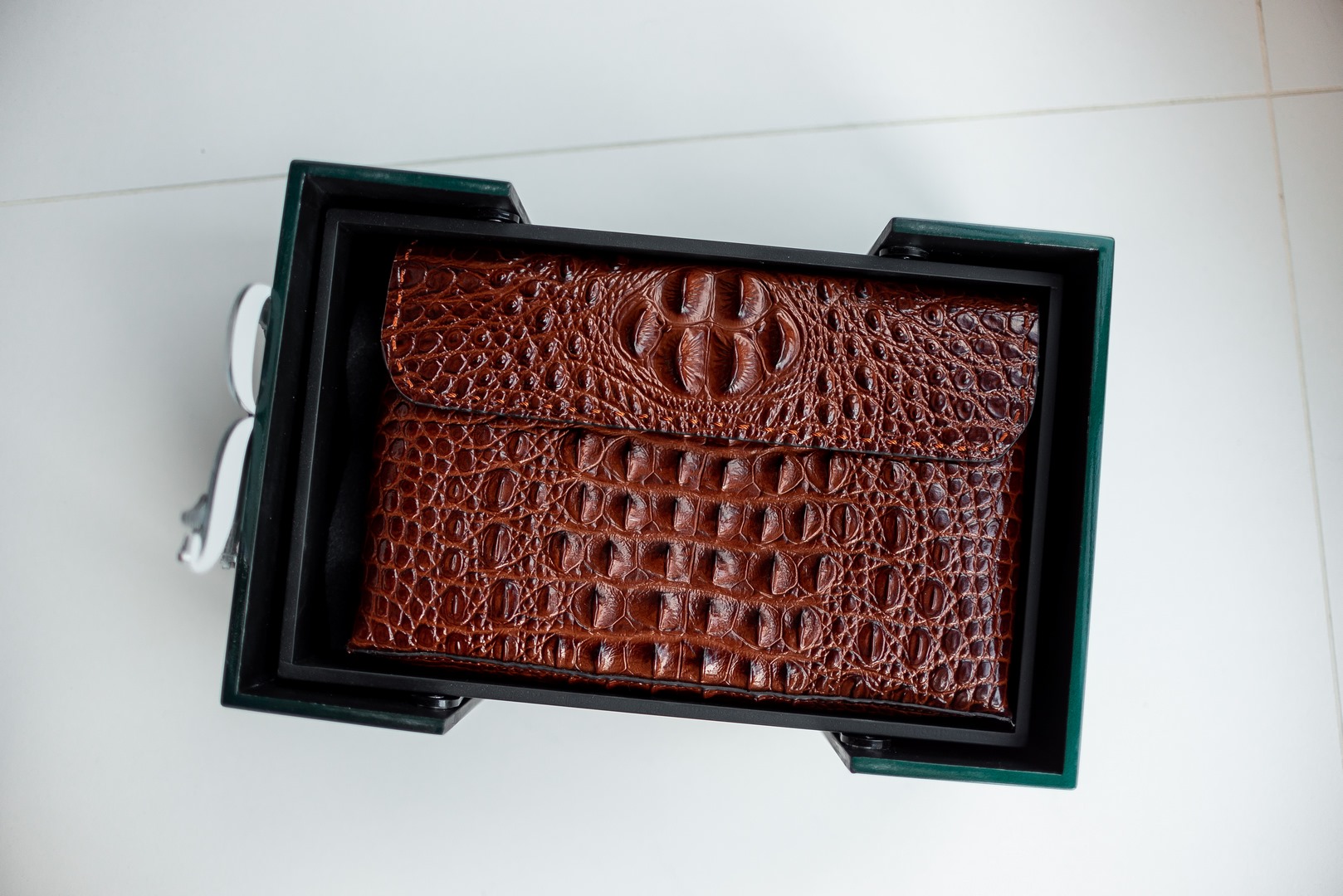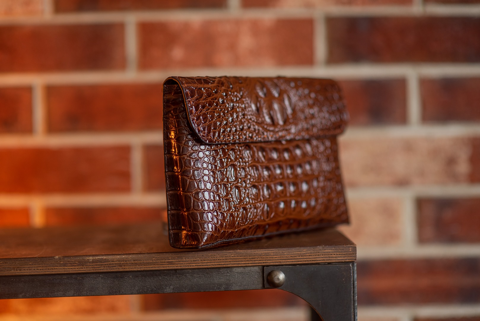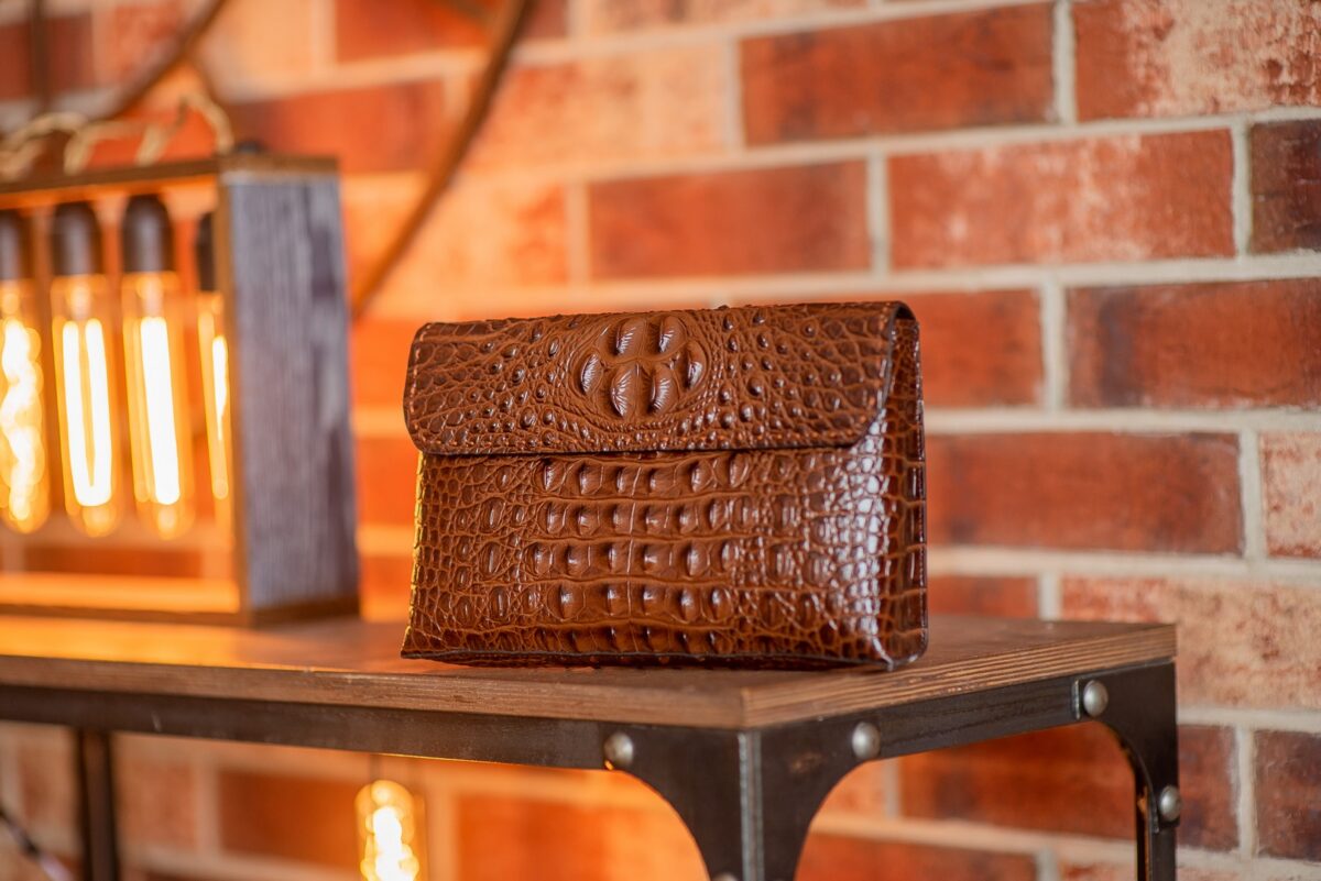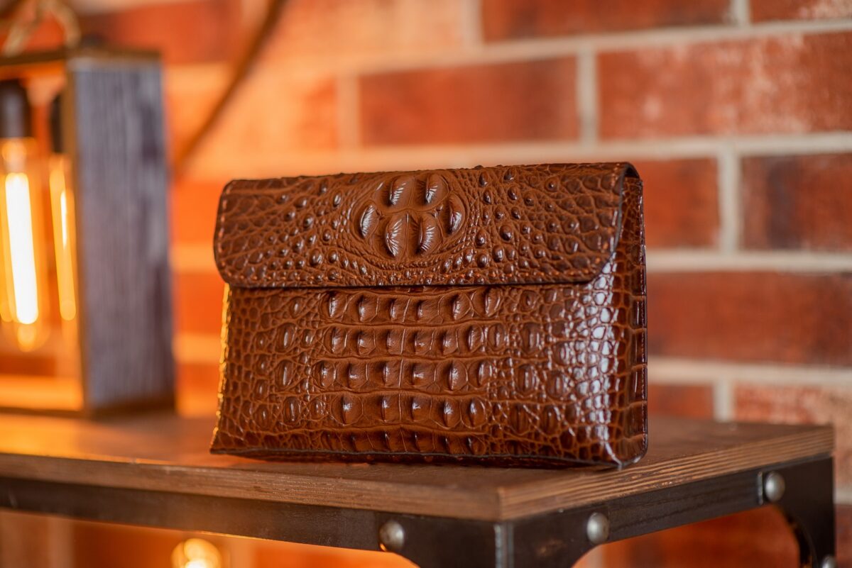 У коричневой сумки из коллекции сезона осень-зима 2020 года много достоинств, но главное — это экзотическая кожа, которая, благодаря крупнозернистой выделке, не боится царапин и заломов.