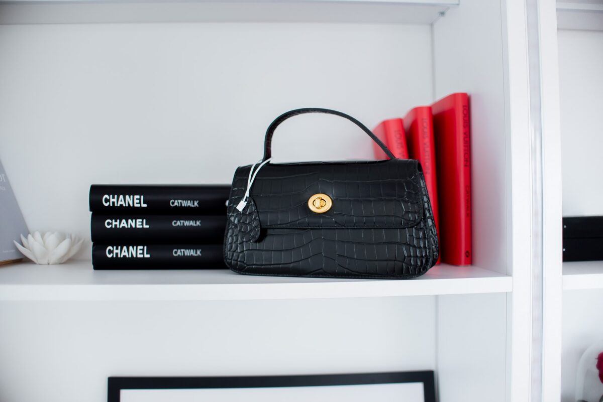 Luxury сумка Felice ручной работы из экзотической кожи крокодила в чёрном цвете, дополнена надежной фурнитурой в золотом оттенке.