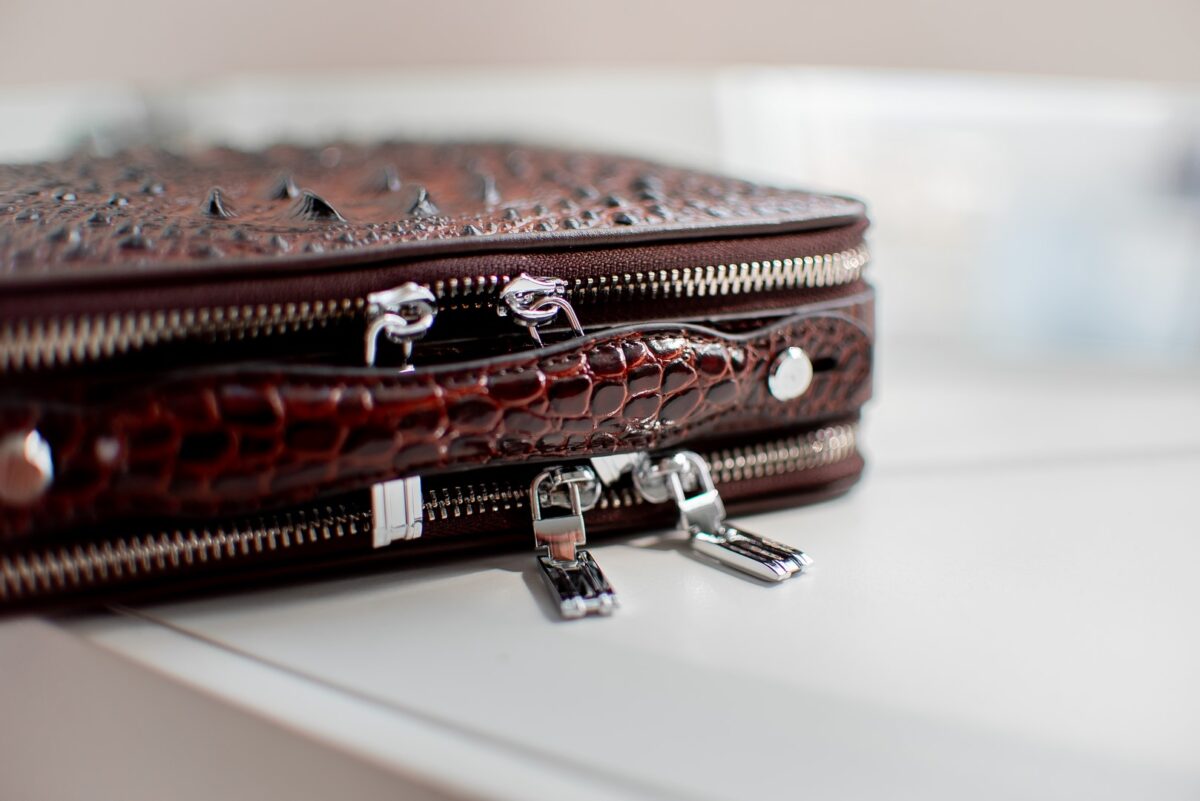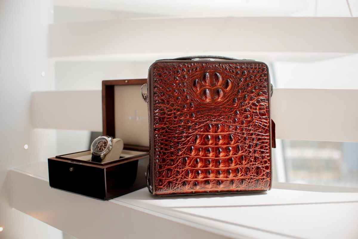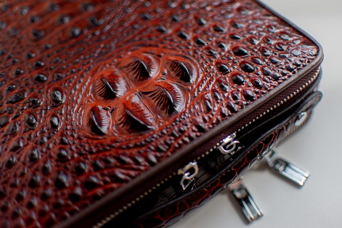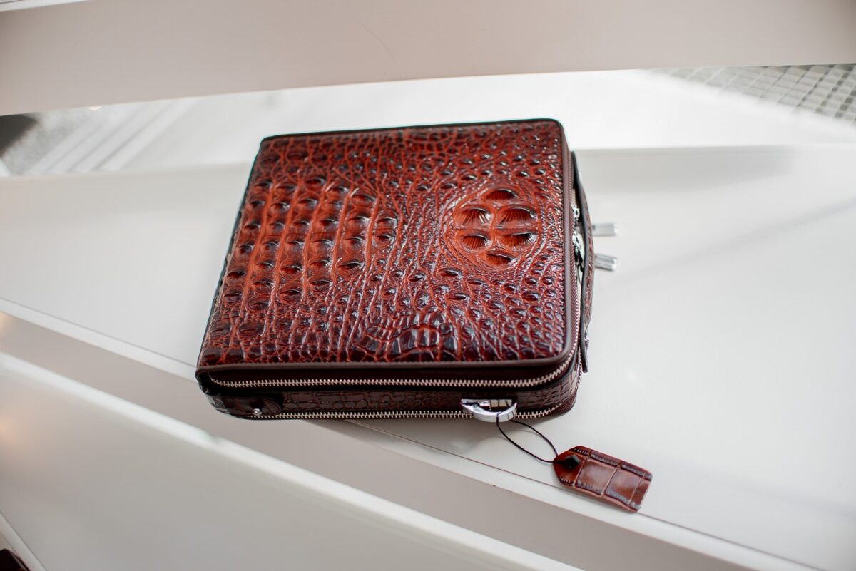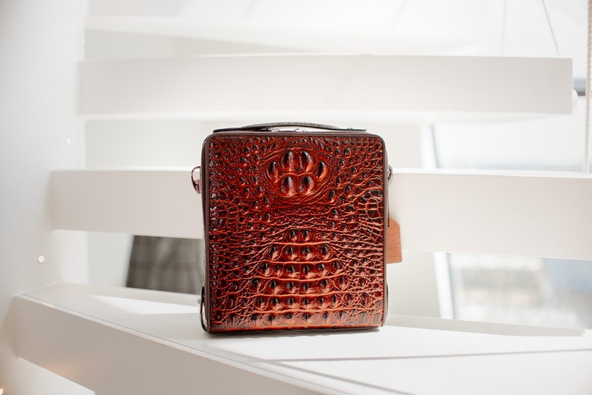 Изделие выполнено из натуральной кожи крокодила. Качественная фурнитура в серебряном оттенке.