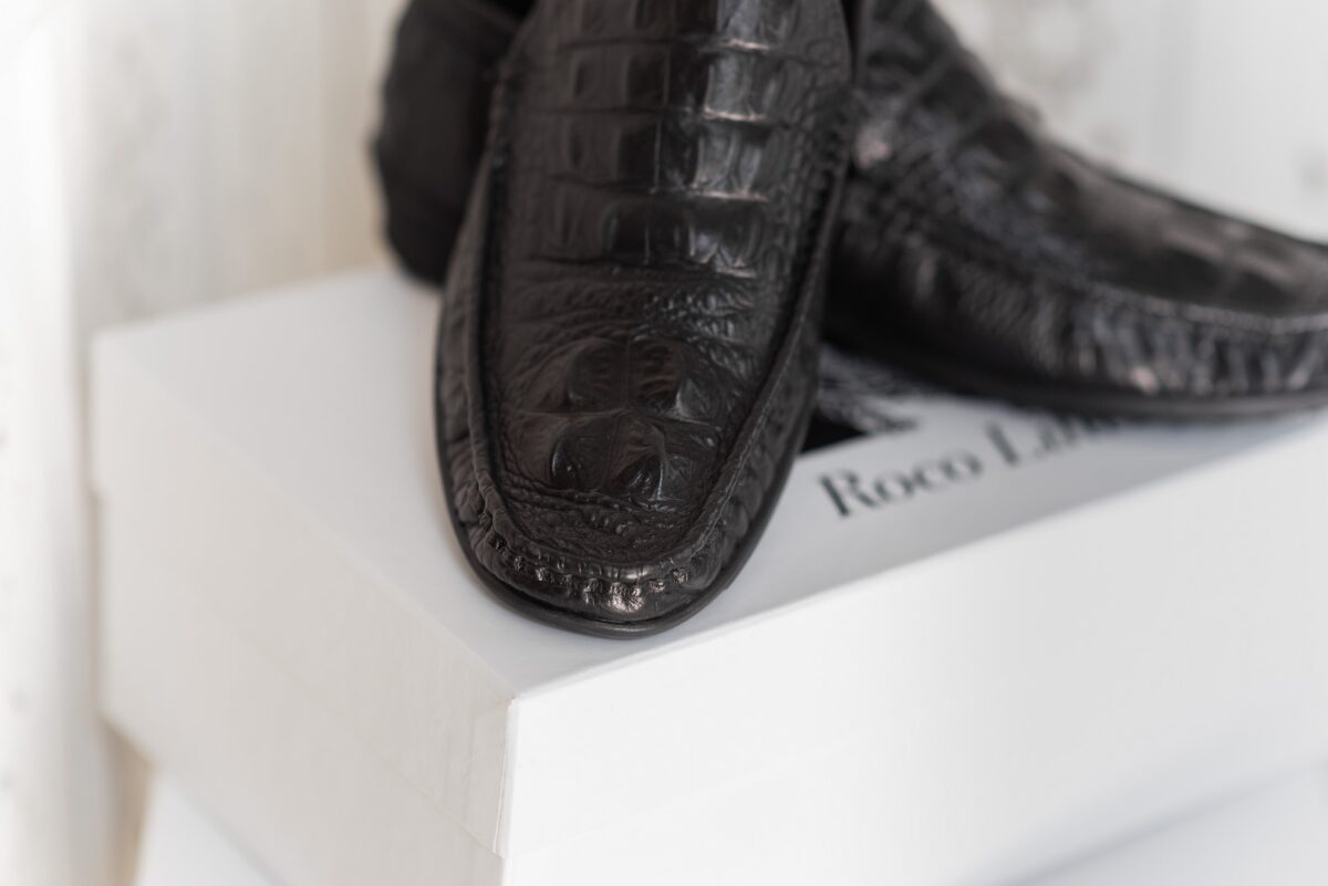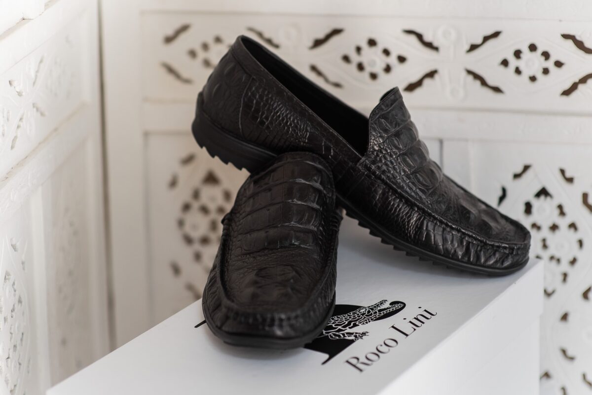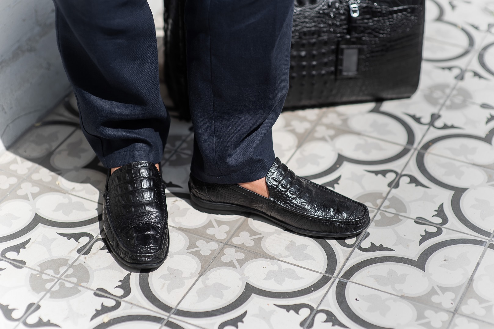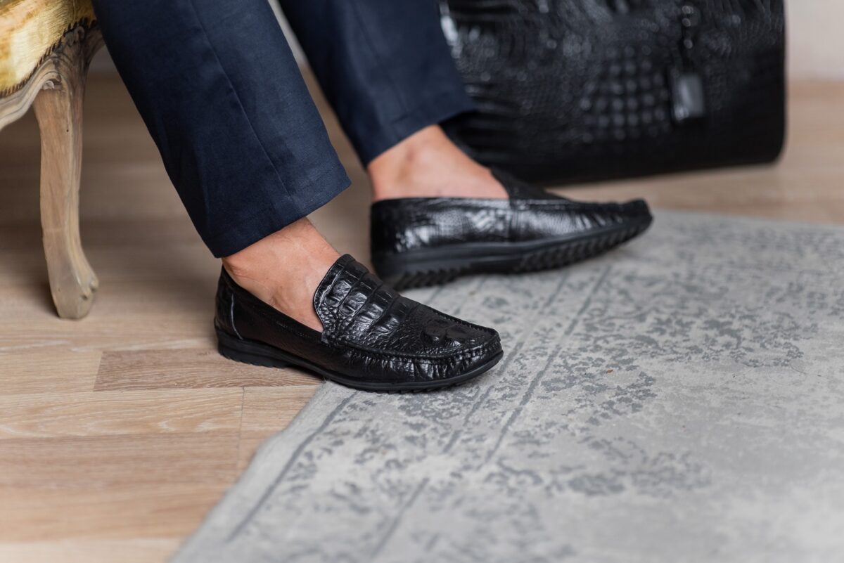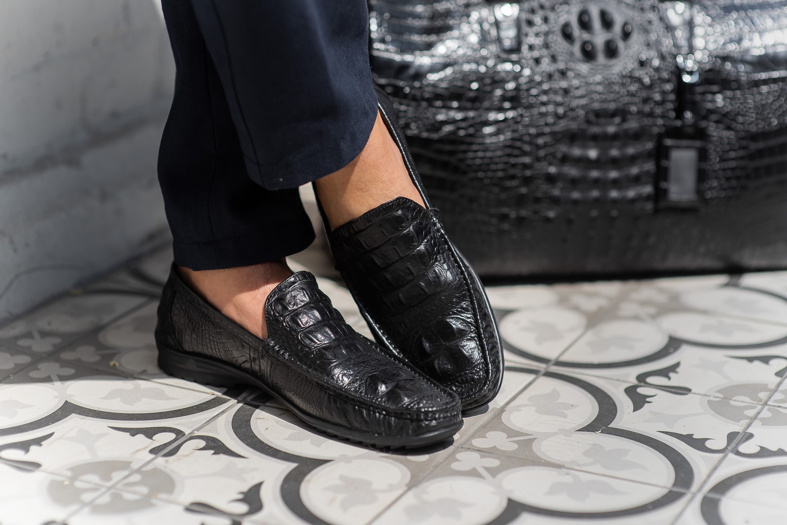 Качественная выченка кожи крокодила в чёрном цвете, отличная амортизация подошвы делает эти туфли максимально привлекательными и удобными.
