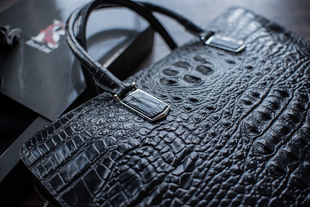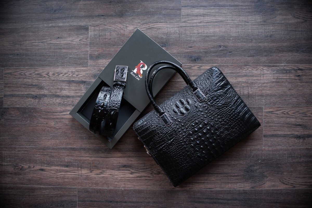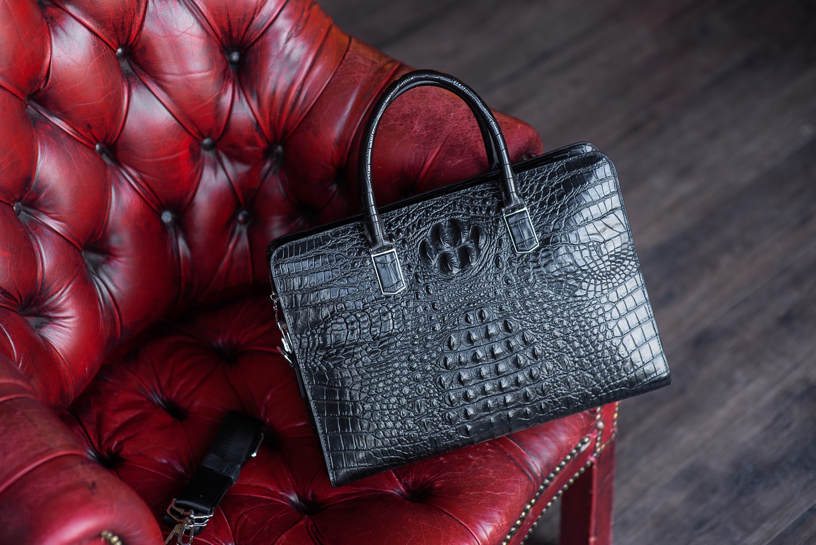 Изделие выполнено из натуральной кожи крокодила чёрного цвета. Качественная фурнитура в серебряном оттенке.