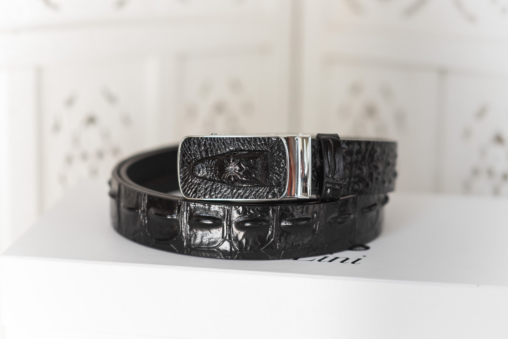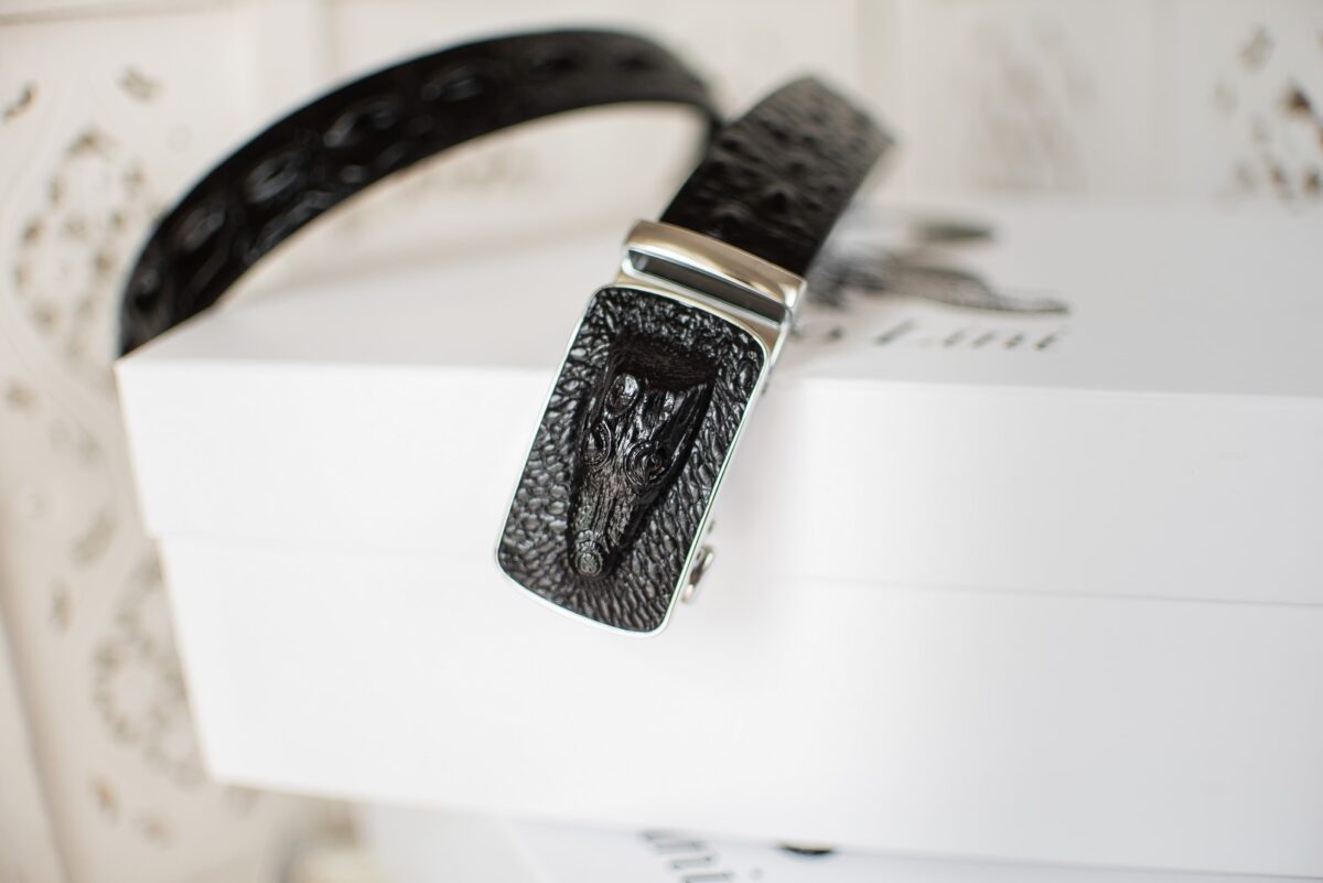 Аксессуар из натуральной кожи крокодила, регулируется.