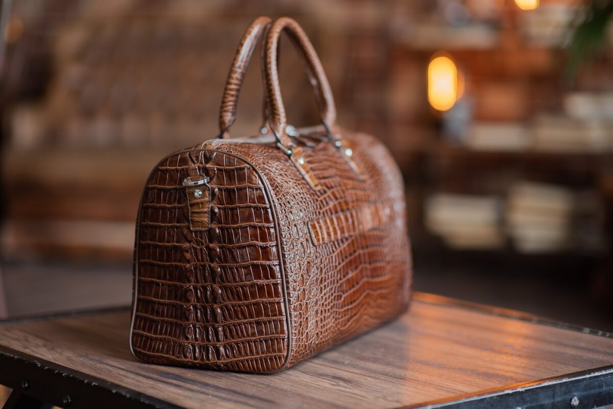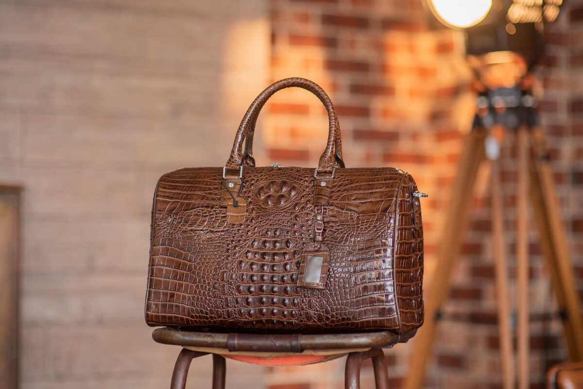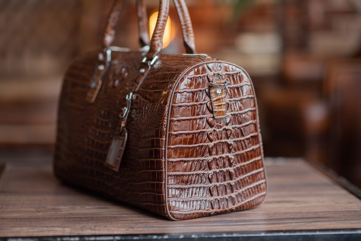 Ручная кладь Pellegrino Lux класс, коричневого цвета, выполнена вручную из кожи крокодила.